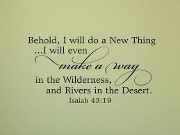 "See, I am doing a new thing! Now it springs up; do you not perceive it? I am making a way in the wilderness and streams in the wasteland."