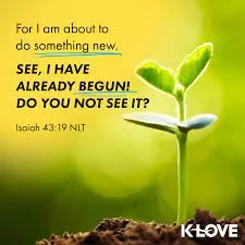 “ Behold, I am doing a new thing; now it springs forth, do you not perceive it? I will make a way in the wilderness and rivers in the desert.” Isaiah 43:19