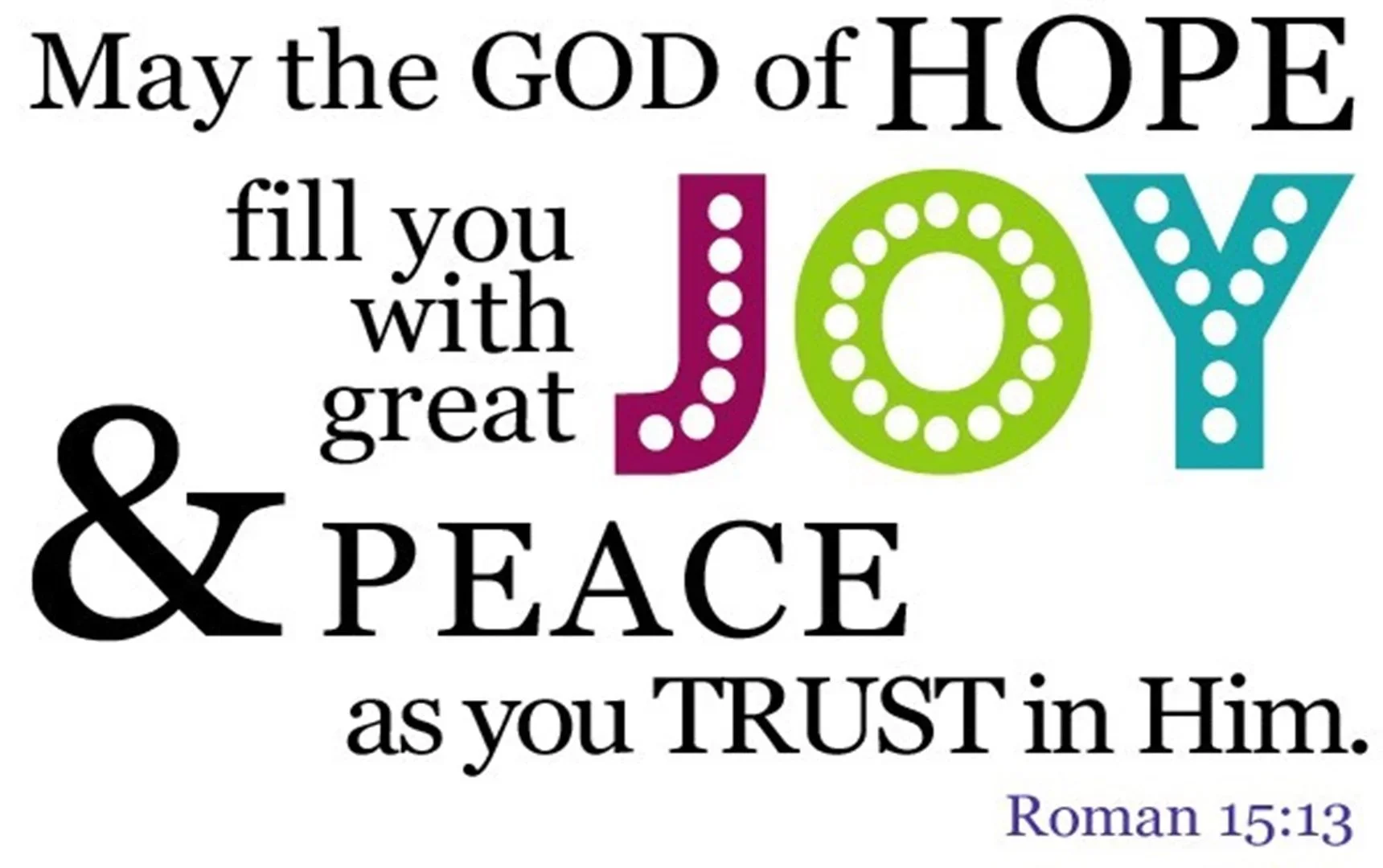 I pray that God, the source of hope, will fill you completely with joy and peace because you trust in Him. Then you will overflow with confident hope through the power of the Holy Spirit. (Romans 15:13 NLT)